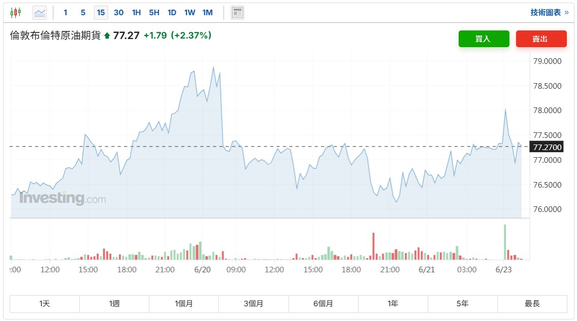 好意思国对伊朗福尔多、纳坦兹和伊斯法罕三处核范例的军事打击行为,激发国外动力阛阓剧烈轰动。各人基准布伦特原油价钱一度应声飙升5.7%至每桶81.40好意思元,继续近三周的高潮态势,油价价差进一步拉大。截止发稿,布伦特原油期货回落至77.27好意思元/桶。