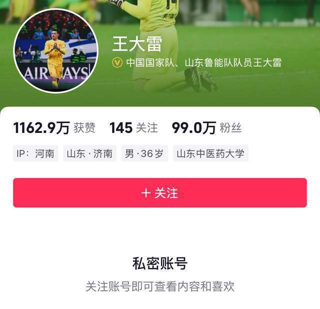 中超联赛第16轮,山东泰山客场2-2战平河南队赛后,泰山队36岁门将王大雷社媒晒图,布景为中国二字,并配文拜拜,疑似默示将告异国度队。相干词随后王大雷就遭逢网暴,被顶点球迷喷成了玄妙账号。